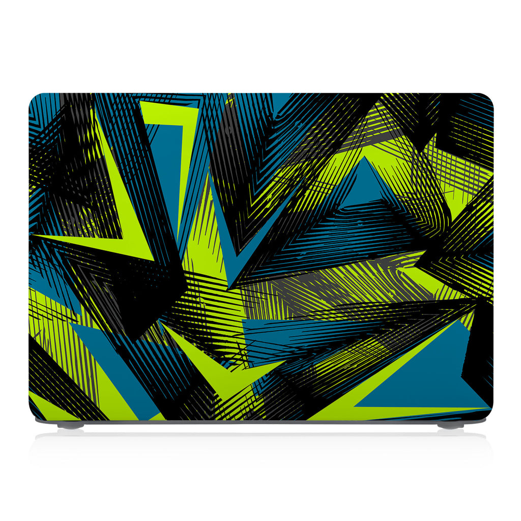 " Geometric design meets exotic influence in this mash-up! The Macbook Case features rows of triangles depicting palm trees and oversized leaves; the calming color palette is a mix of oceanic blues and greens. Trendy but timeless, this design will surely whisk you away to the desert island paradise of your dreams. "